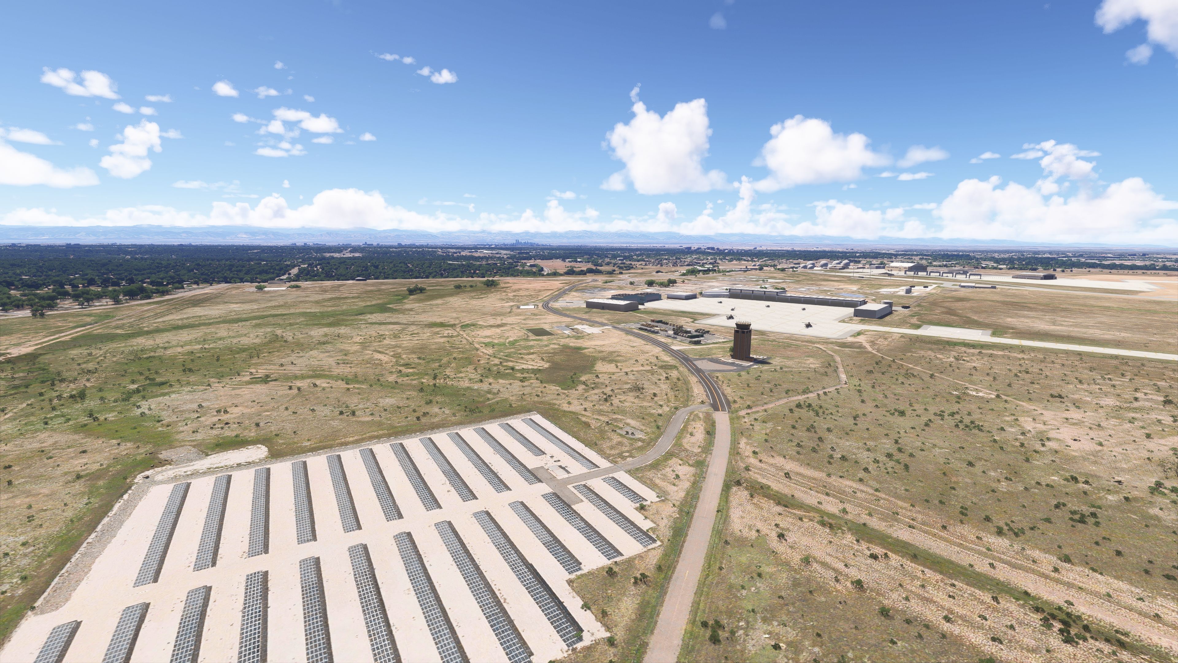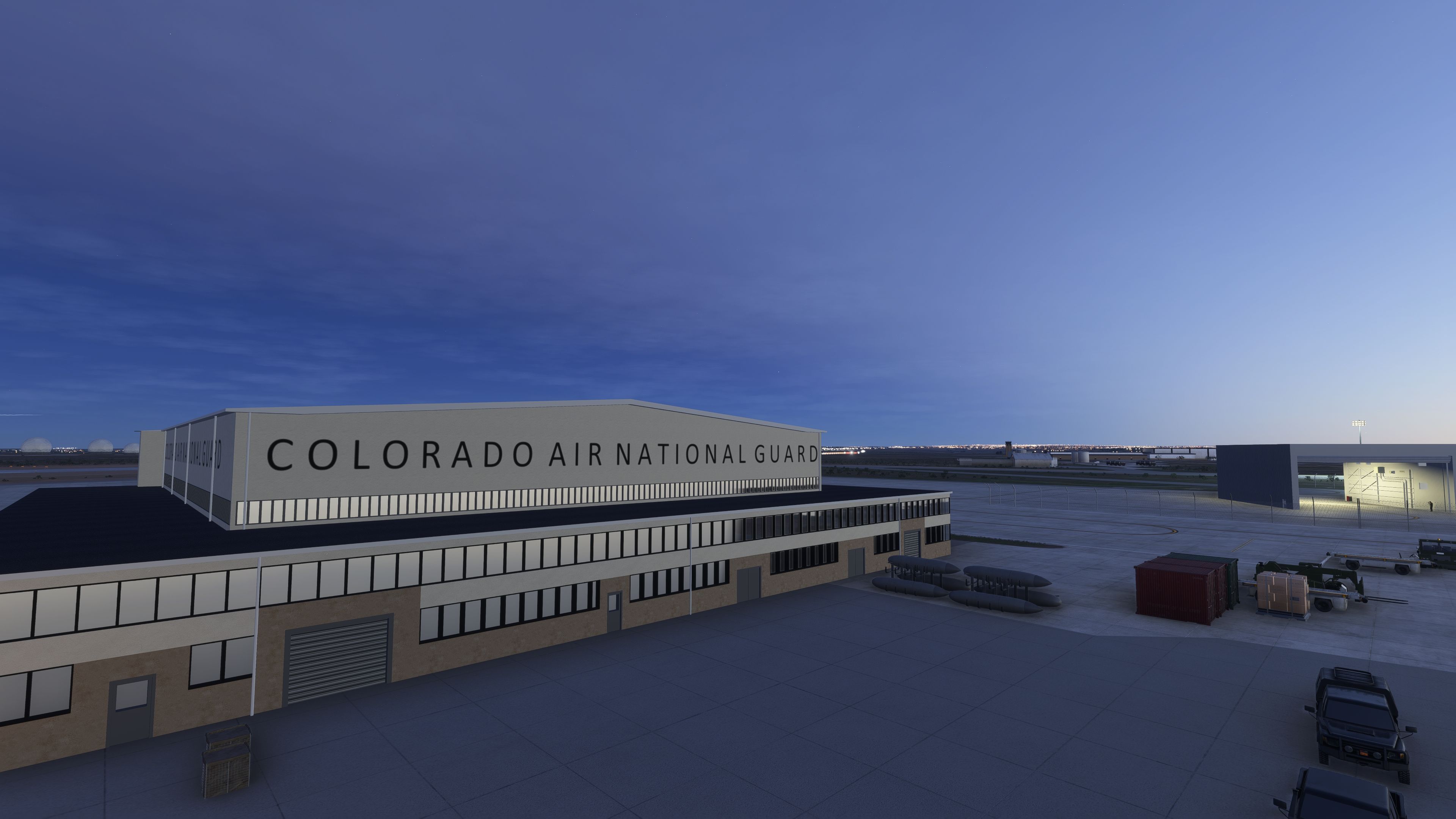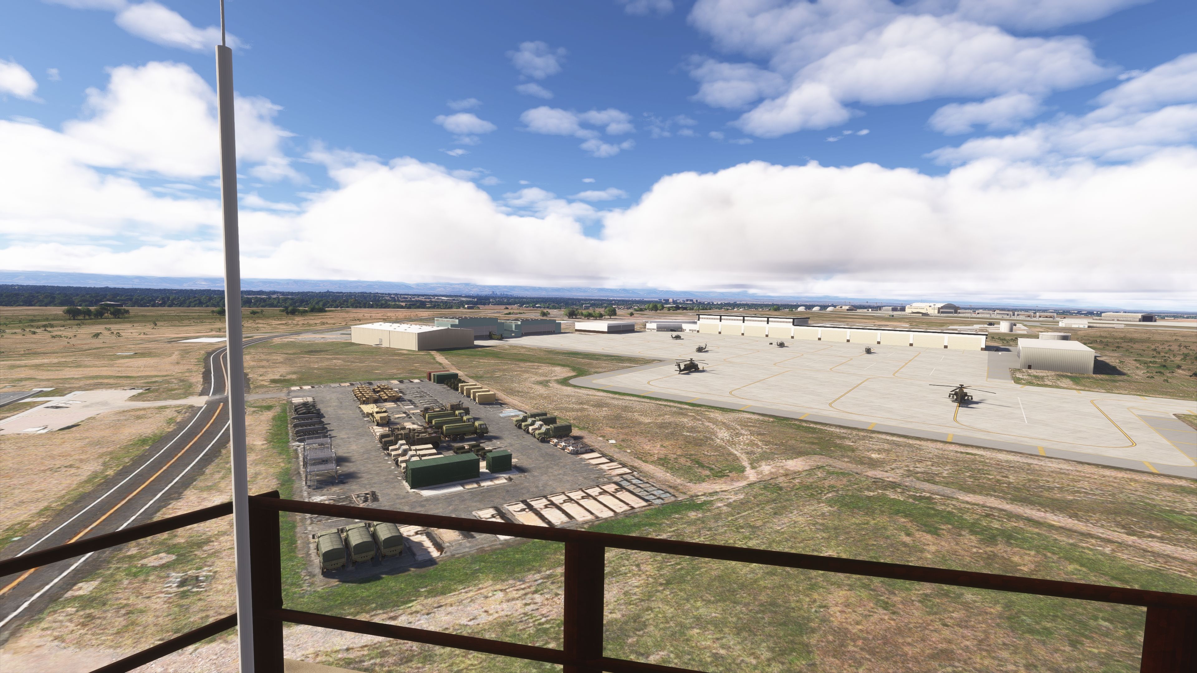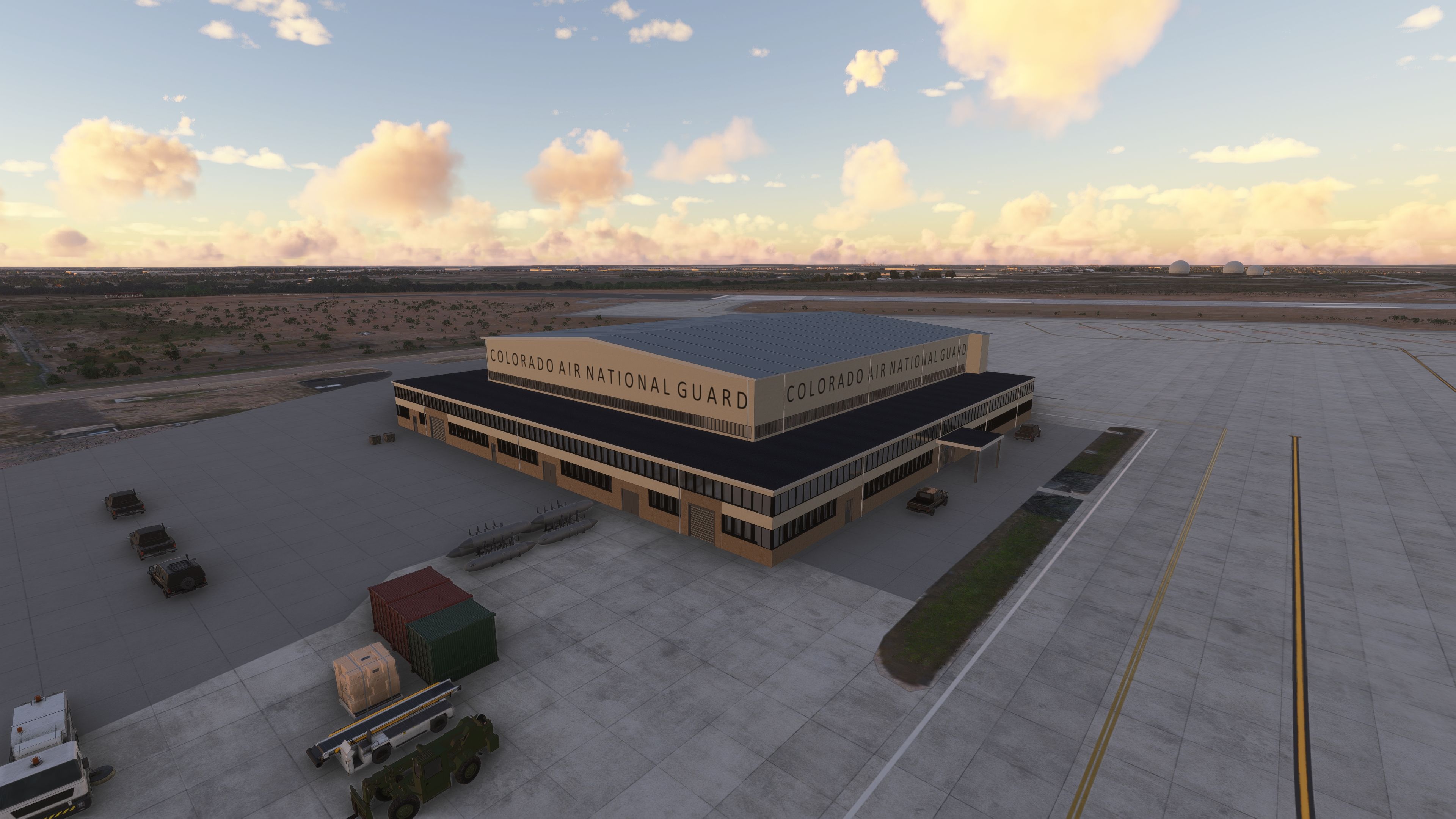 Buckley Space Force Base (KBKF) gains an airfield enhancement with a bespoke control tower, hand-placed F-16s and helicopters, plus flattened aprons and runway for predictable ground handling in Microsoft Flight Simulator 2024 and 2020. Requires USA World Updates and uk2000 Common Library; minor perimeter terrain mesh quirks may remain.