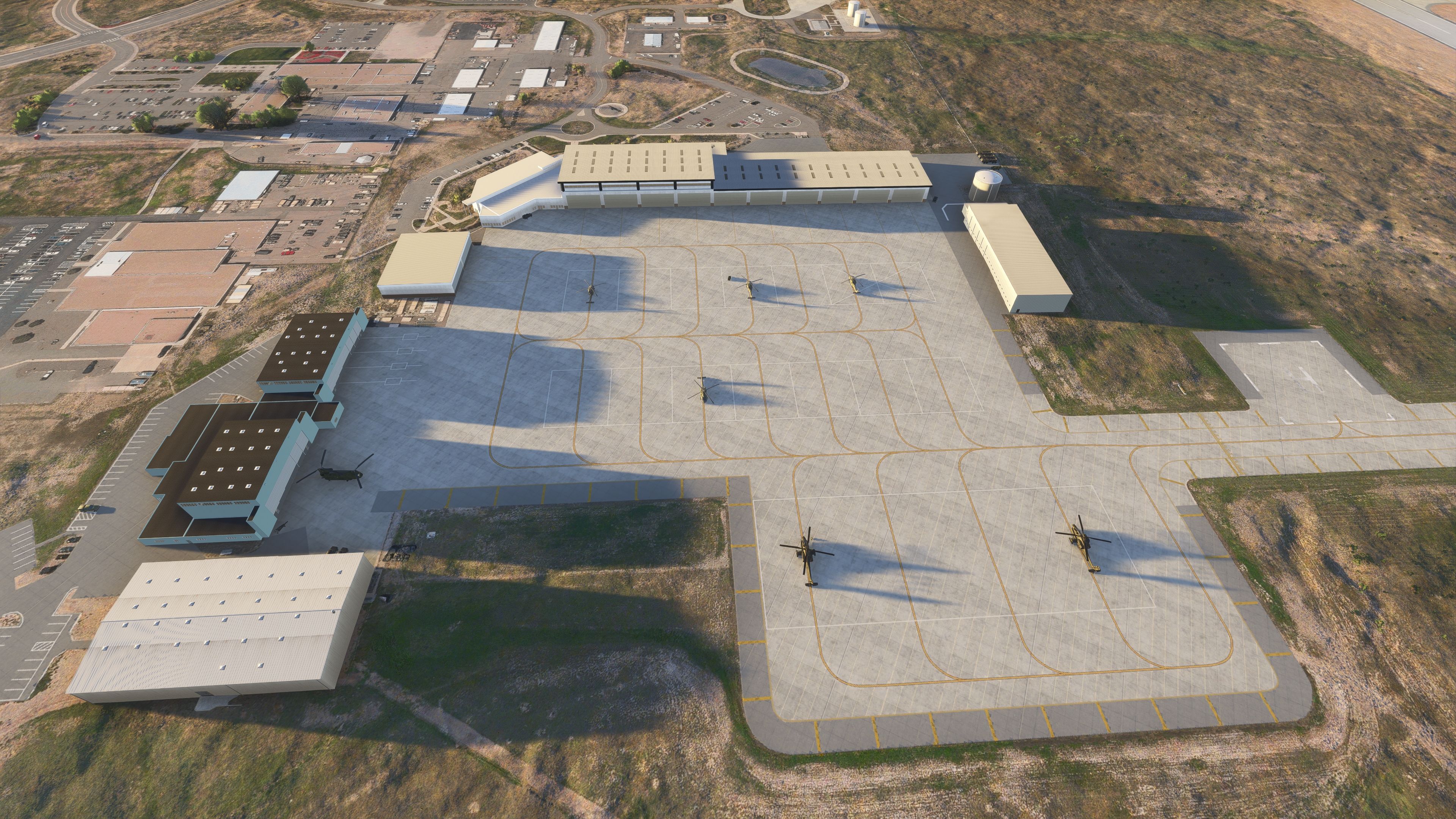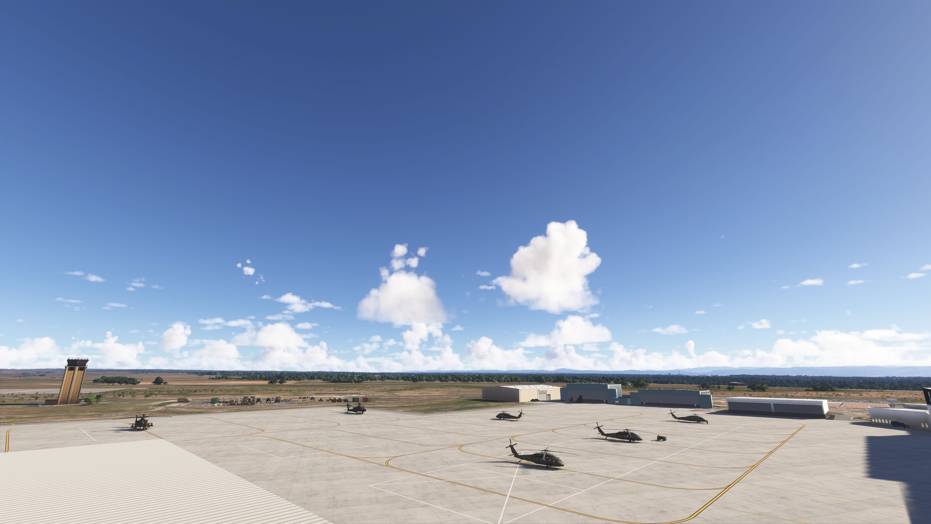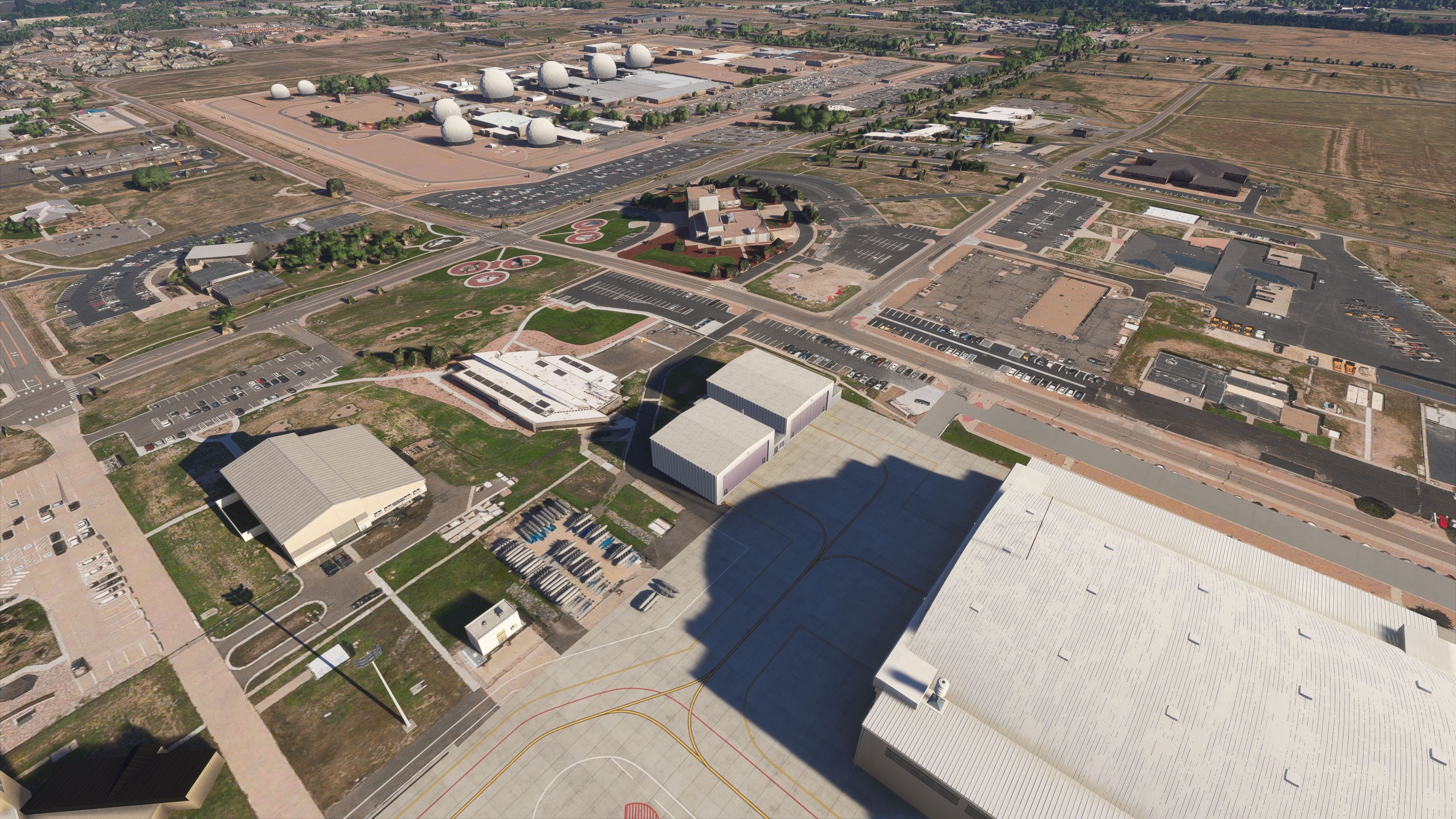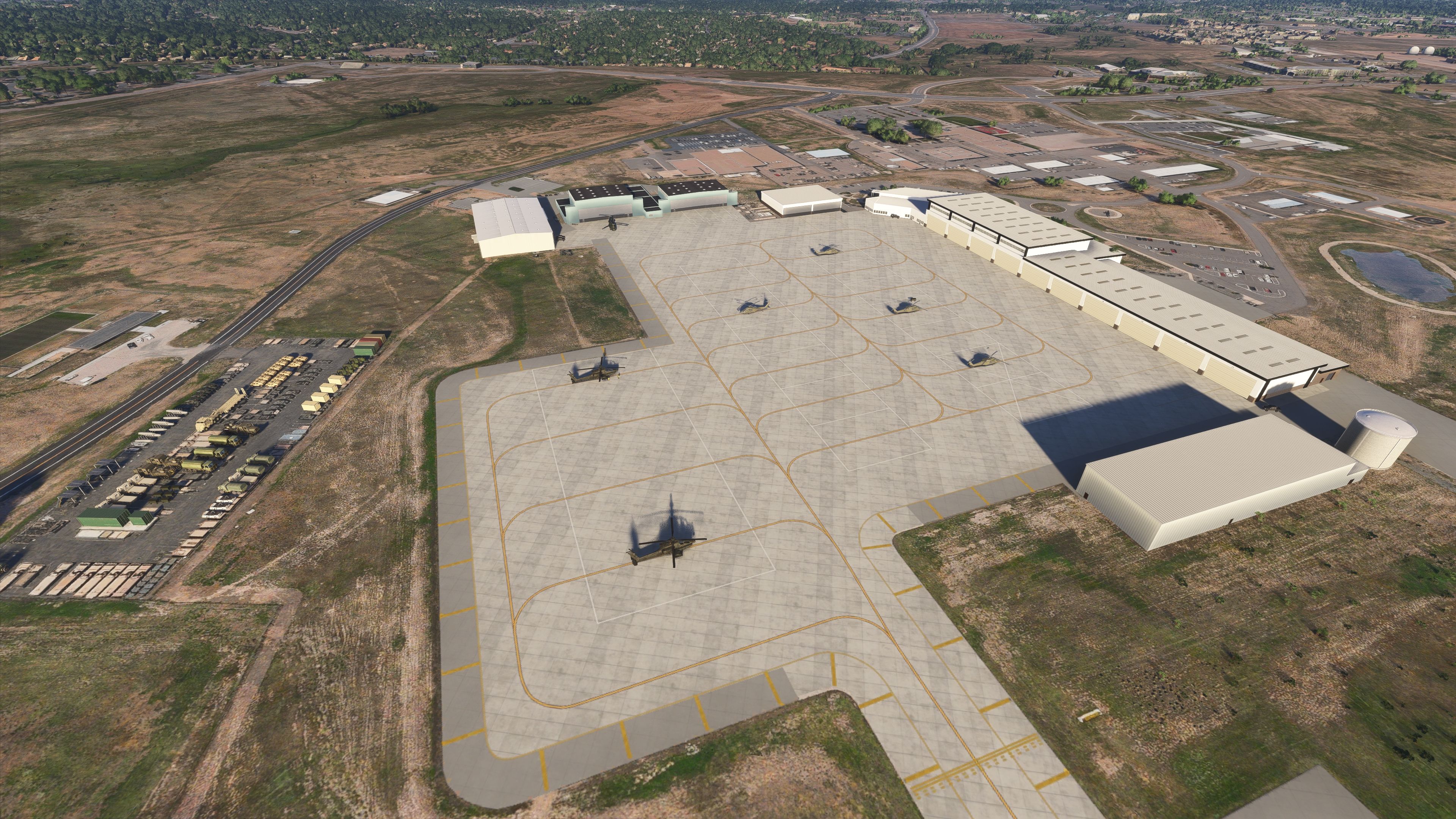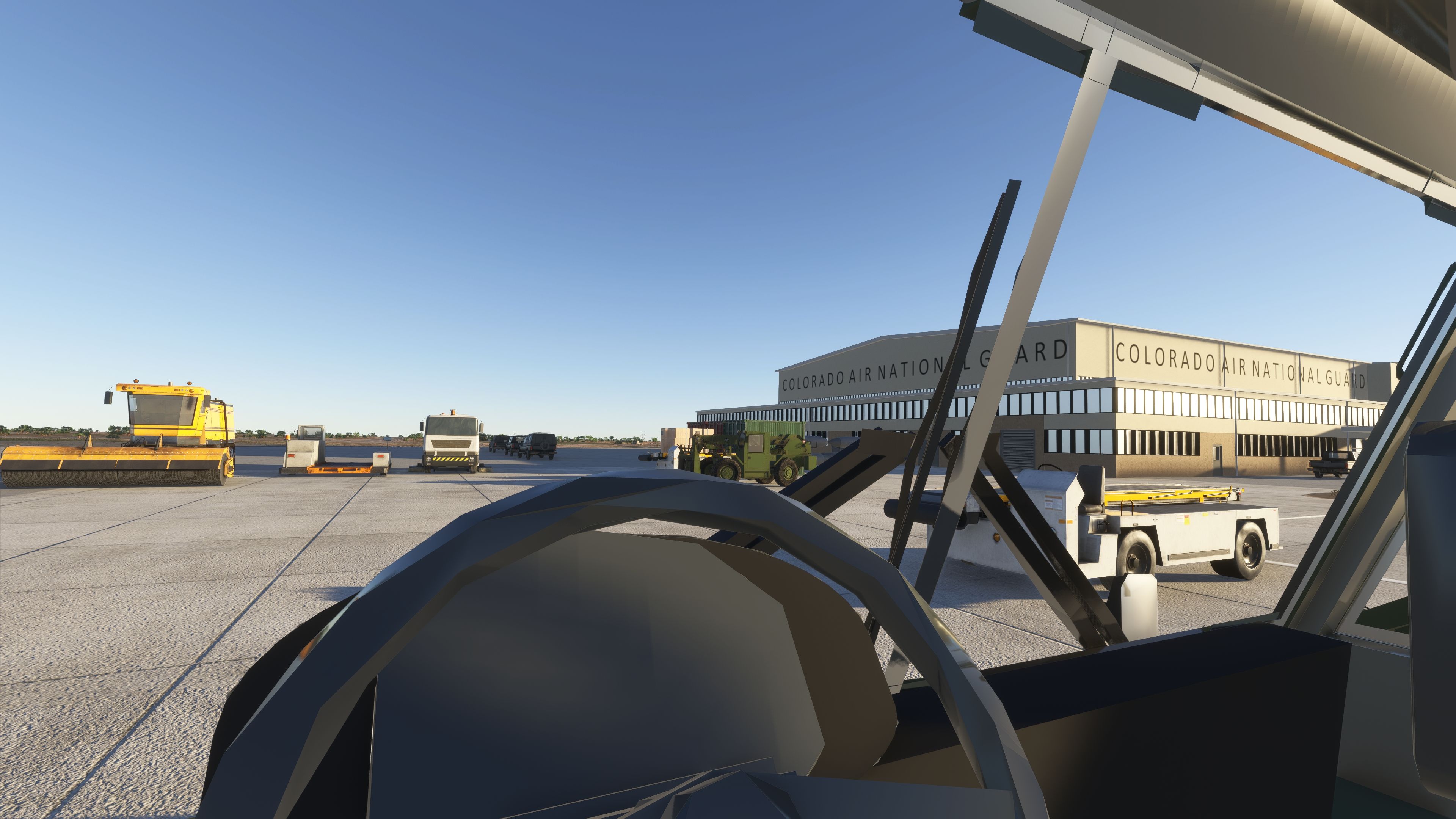 Buckley Space Force Base (KBKF) gains an airfield enhancement with a bespoke control tower, hand-placed F-16s and helicopters, plus flattened aprons and runway for predictable ground handling in Microsoft Flight Simulator 2024 and 2020. Requires USA World Updates and uk2000 Common Library; minor perimeter terrain mesh quirks may remain.