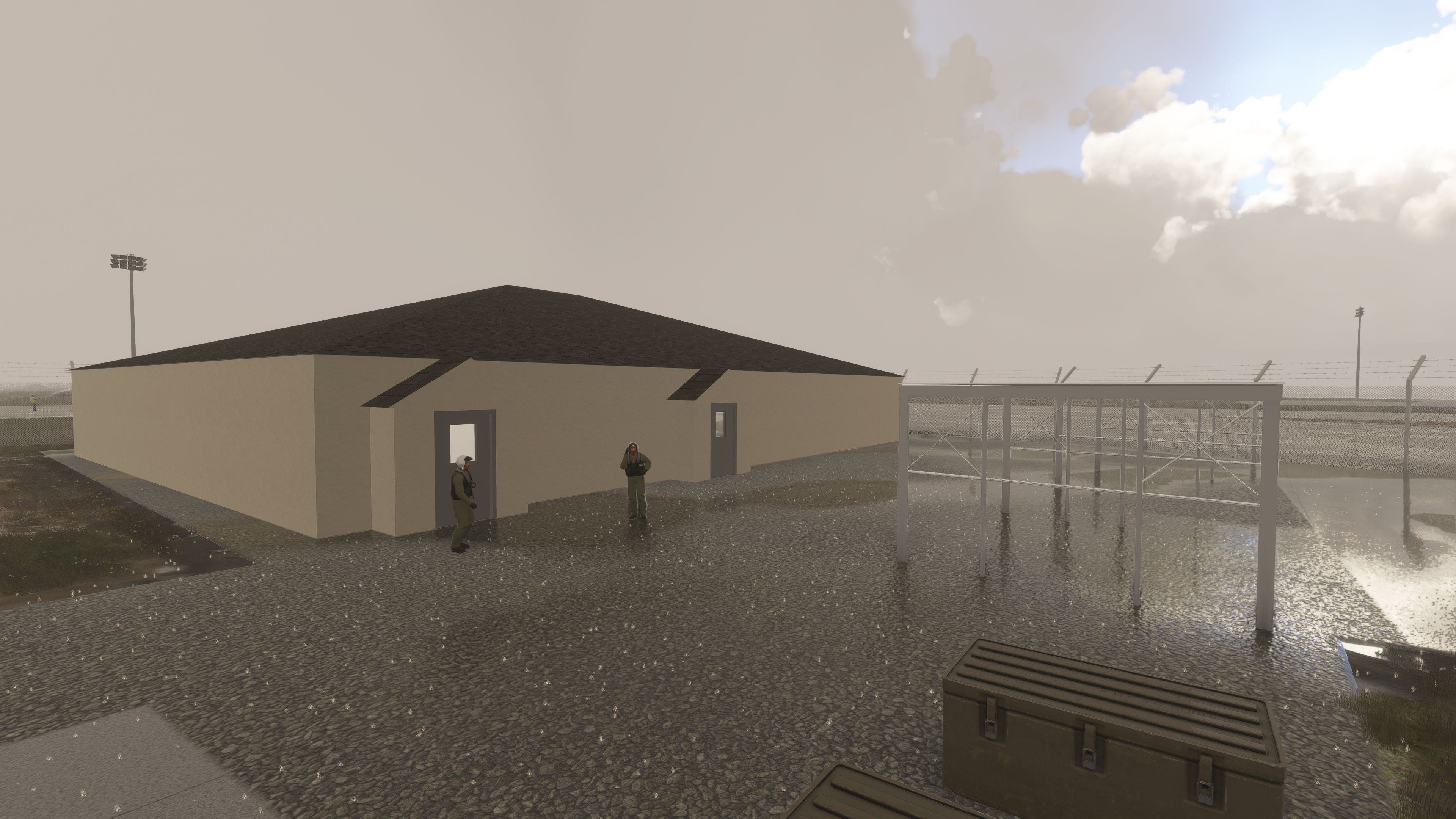 - Extensive building set combining scratch-made structures and library-based assets to represent operational zones, hangars, administrative blocks, and support facilities.