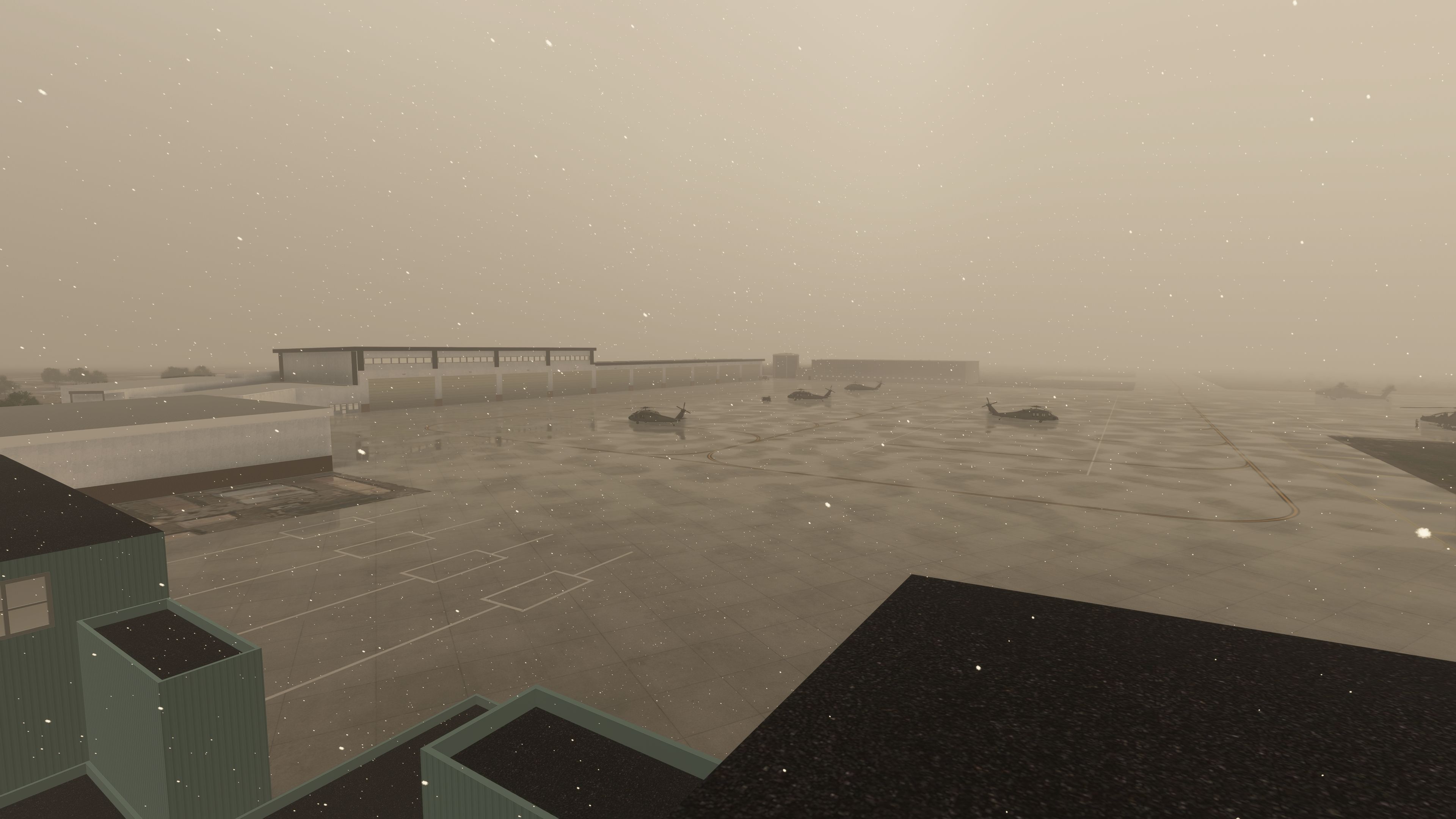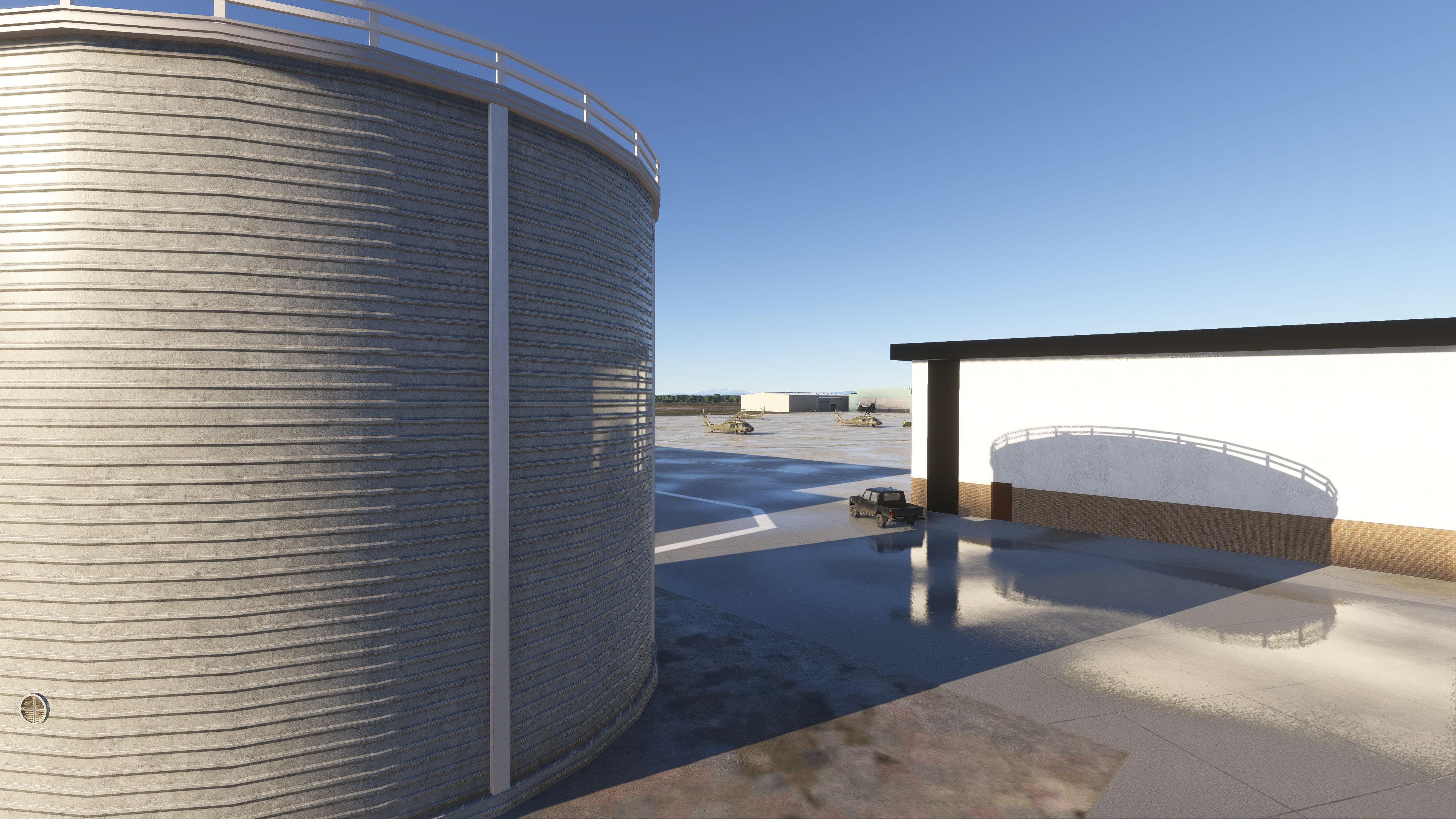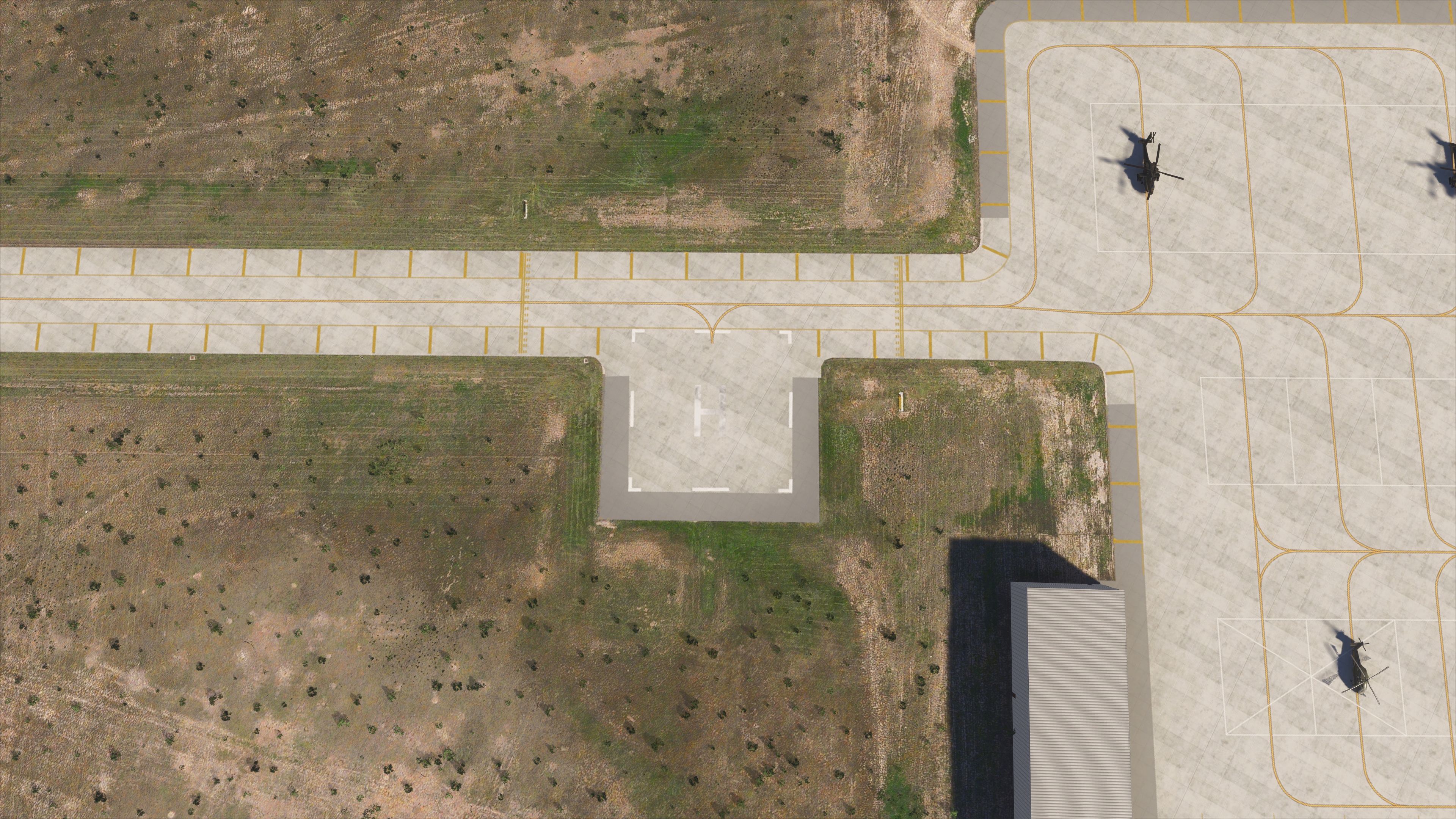 Because the surrounding terrain mesh can be uneven in the default sim, v1.02 prioritizes a reliable operating surface. The author has removed large-scale terraforming around the perimeter while ensuring the runway and aprons remain properly flattened. This approach reduces terrain conflicts that previously caused structures to float or sink on undulating ground. The broader area may still exhibit elevation quirks pending further investigation, but the core operating footprint is now stable for everyday use.