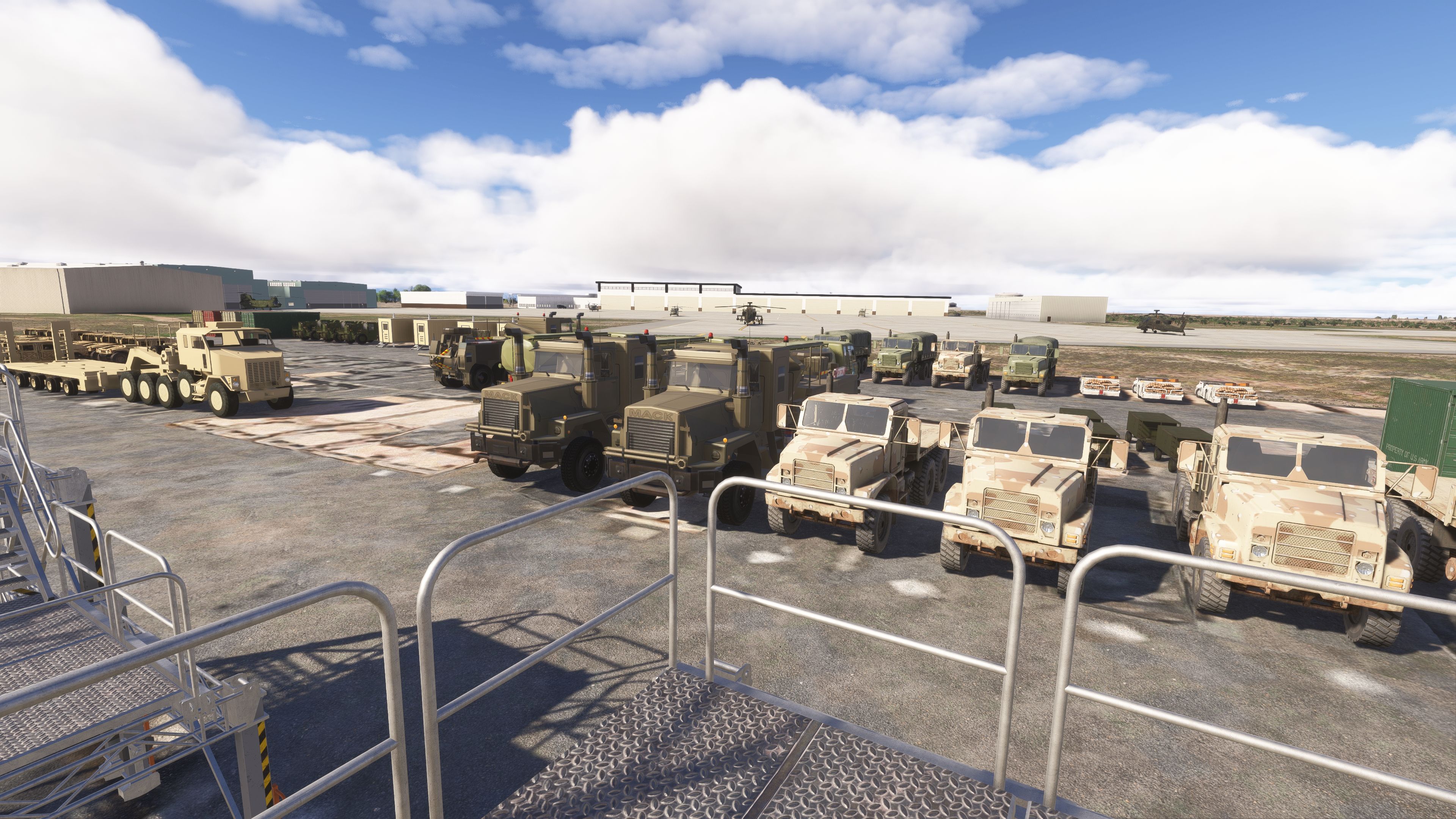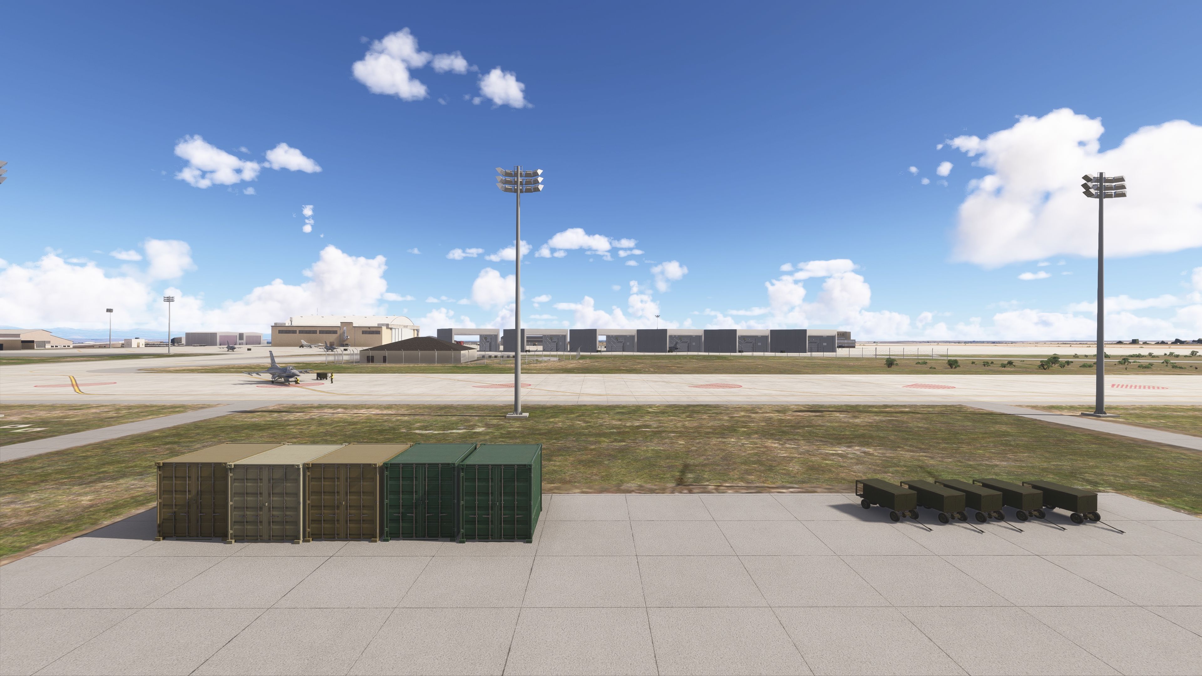 Bring Buckley Space Force Base (KBKF) into sharper focus in Microsoft Flight Simulator 2024 and 2020 with a comprehensive scenery package by nickb007. This freeware release adds a bespoke control tower, scores of hand-placed static aircraft—including F-16C Fighting Falcons, rotary assets, and a CH-47 Chinook—and a broad set of buildings drawn from both library objects and custom-built models. The layout mirrors Buckley’s real-world footprint in Aurora, Colorado, while recent groundwork focuses on stabilizing aprons and runway surfaces for reliable operations at this high-altitude Front Range field.
